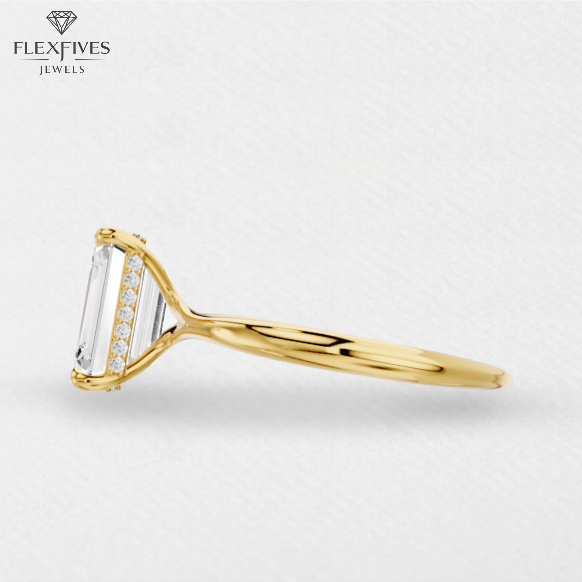 ✦ Emerald Cut Moissanite Engagement Ring with Moissanite Accents