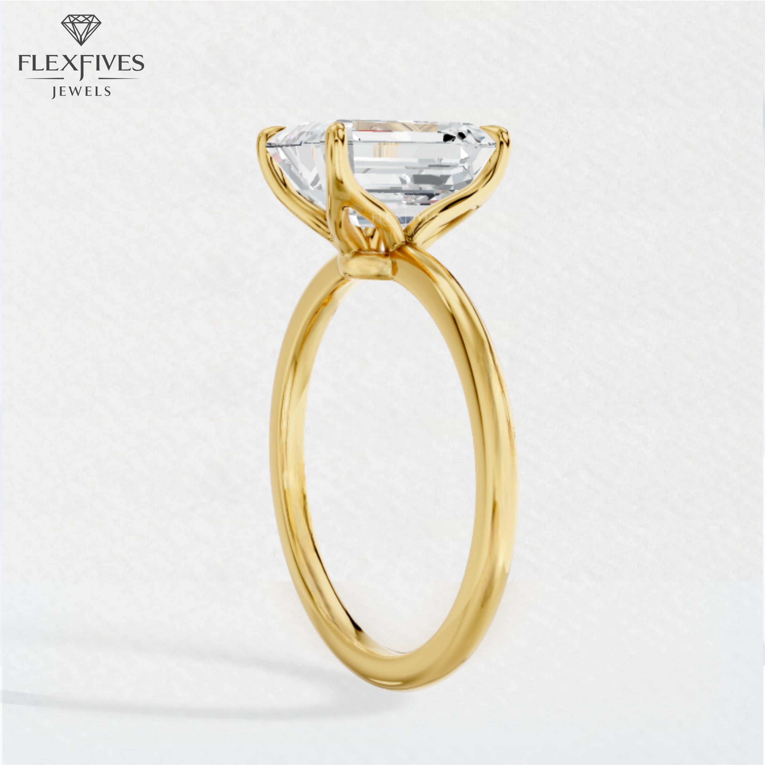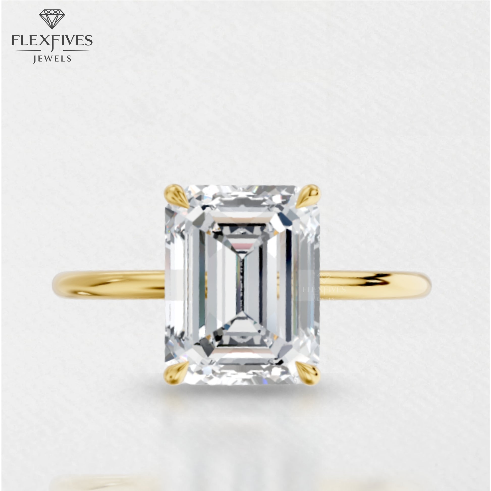 Emerald Cut Moissanite Diamond Ring | VVS Clarity | 1.5 Carat Approx | 4 Prong Setting | White, Rose & Yellow Gold | Custom Engagement Ring