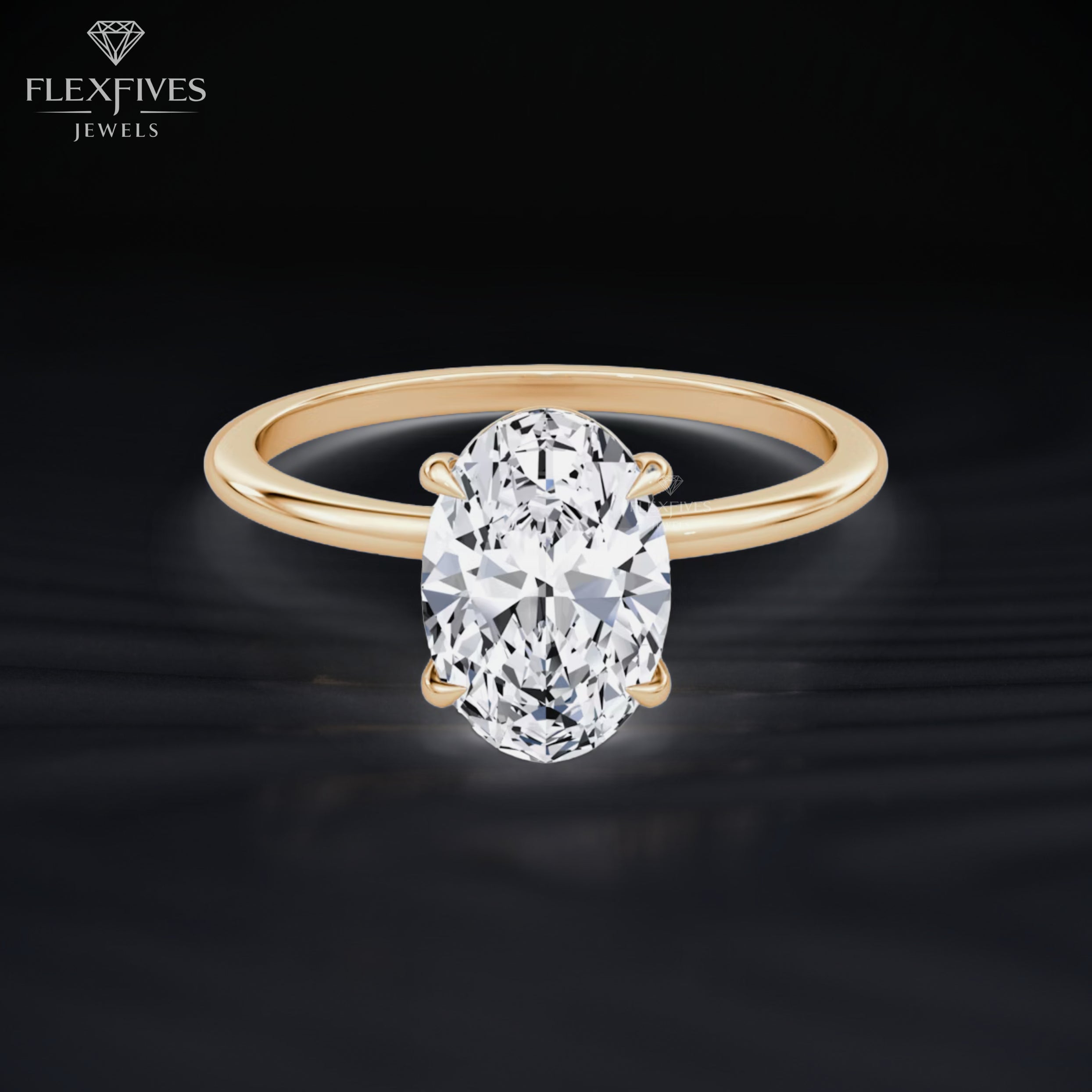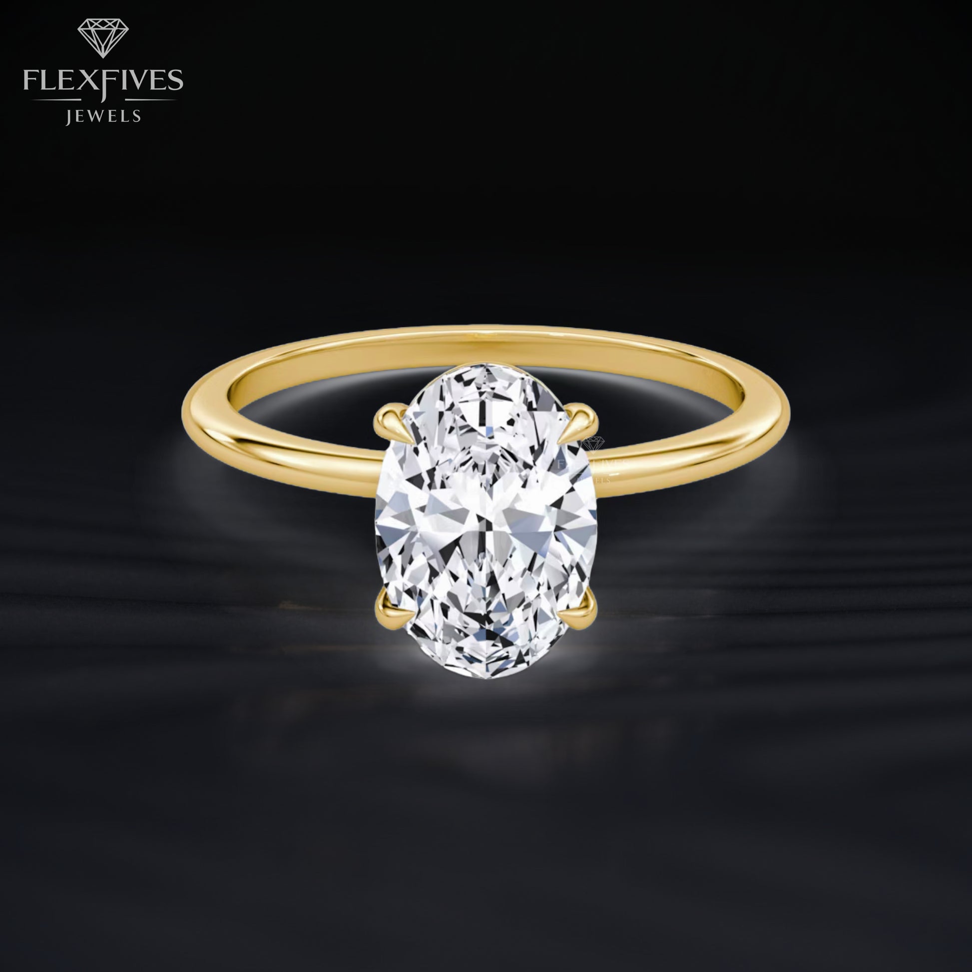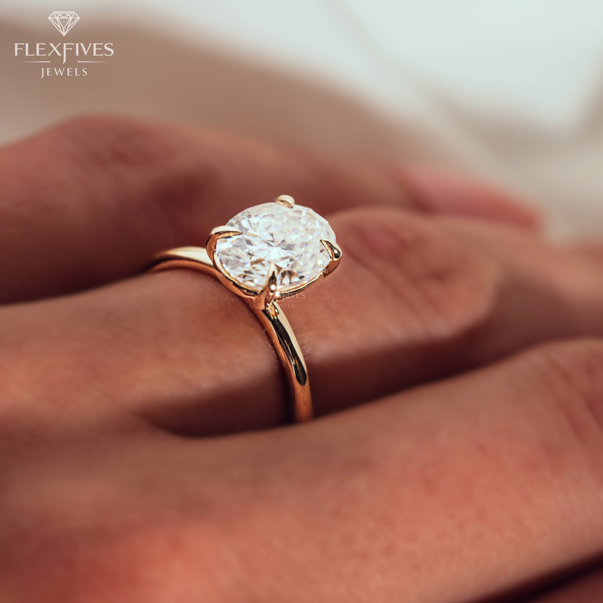 Oval Cut Engagement Ring, Solitaire Ring, Thin Band Engagement Ring, Gold Diamond Ring, Proposal Ring