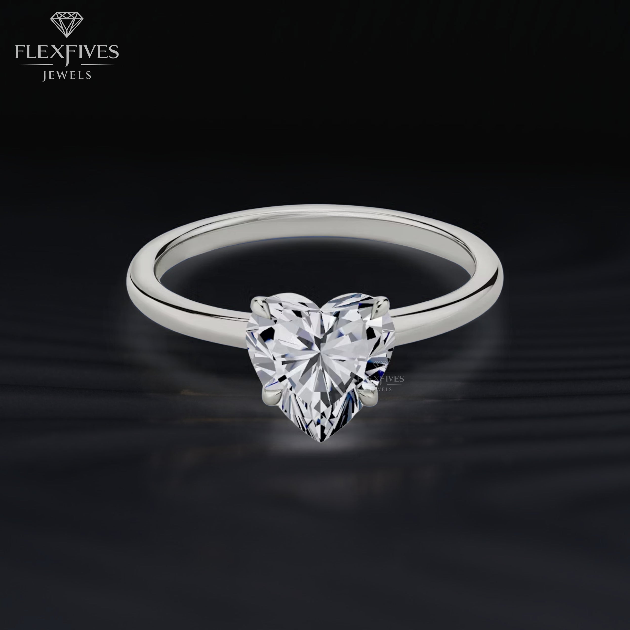 Solid 14K Gold Ring, 1.50 CT Heart Cut Colorless Moissanite Engagement Ring, Prong Accents Solitaire Ring, Proposal Ring, Gift For Women