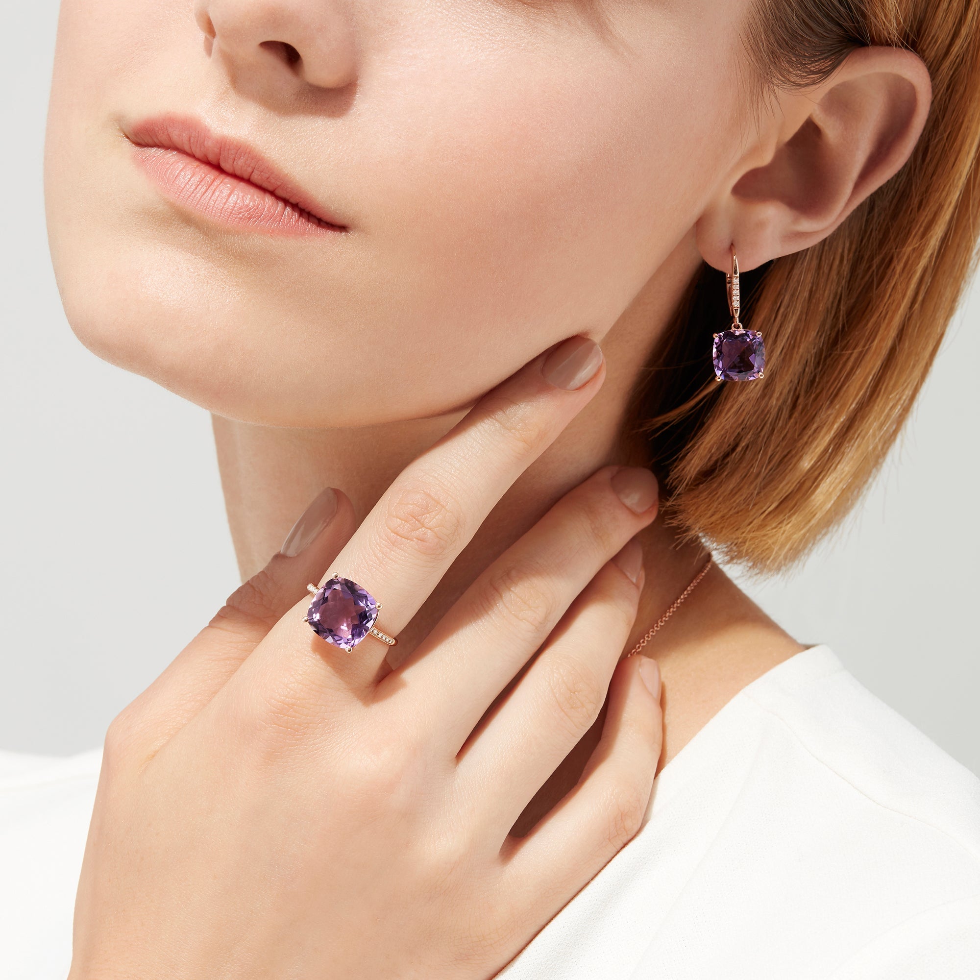 FlexFives 14K Rose Gold Amethyst and Diamond Earrings(Lab Grown Diamond), 8.12 TCW
