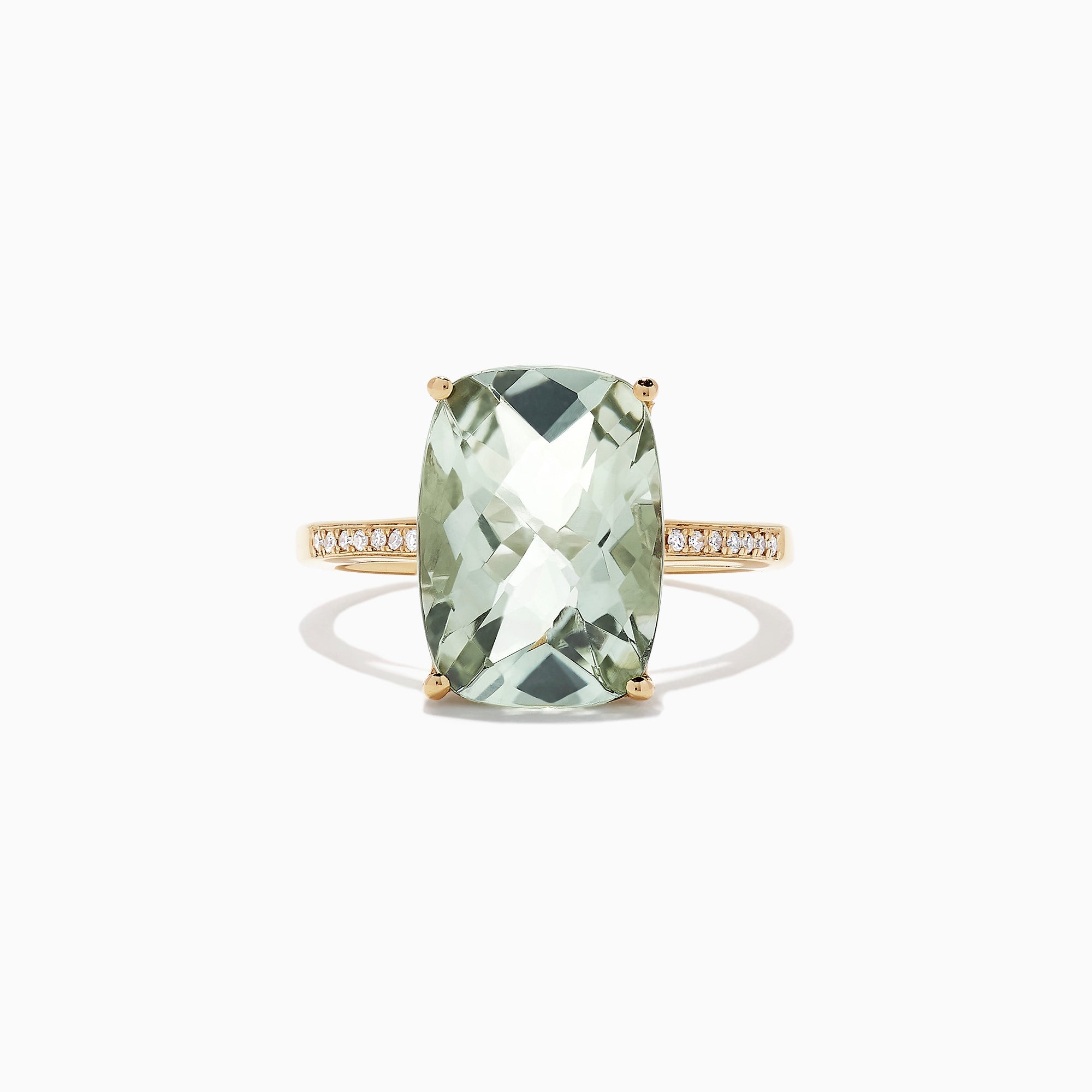 14K Yellow Gold Green Amethyst and Diamond Cocktail Ring