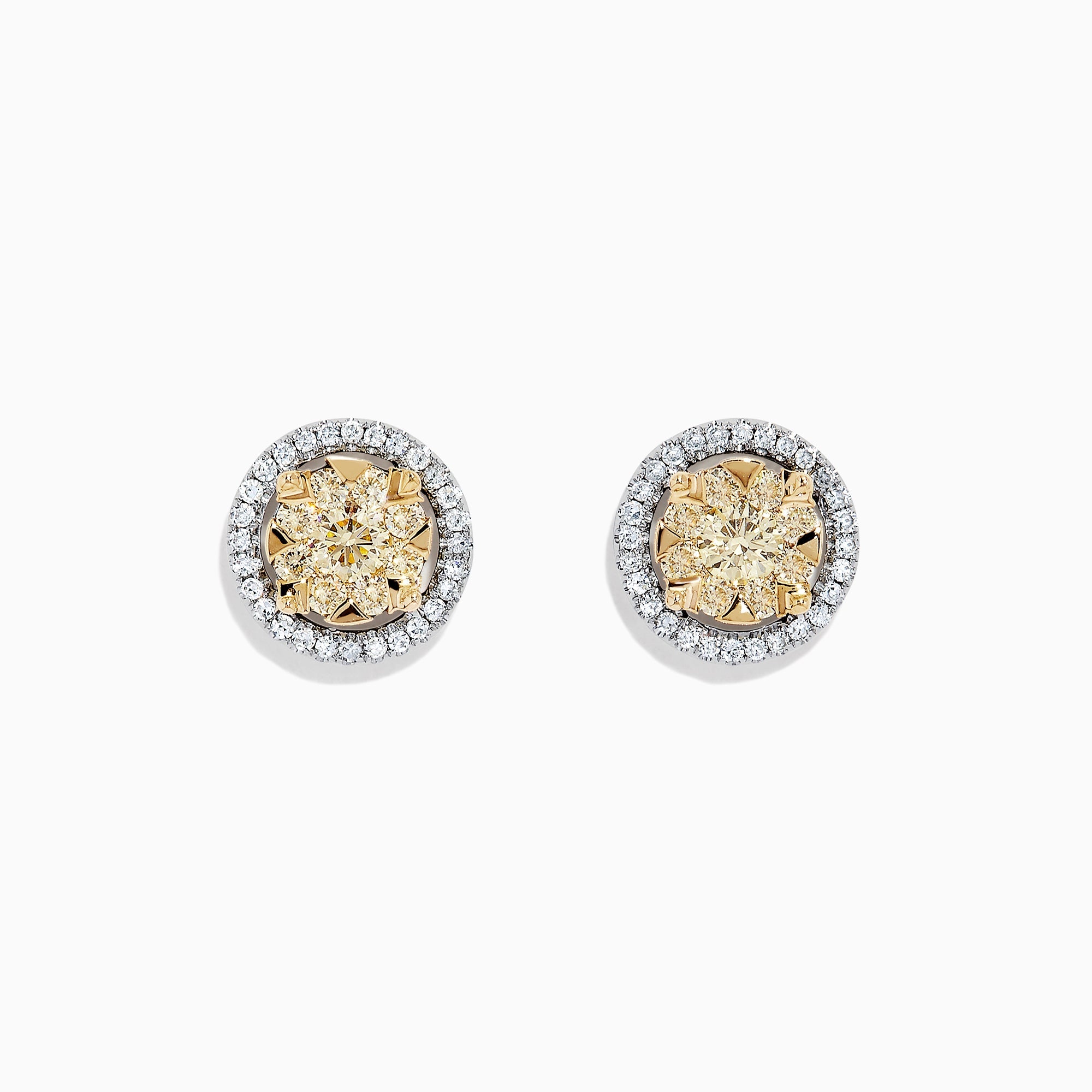Canare 14K Two Tone Gold Yellow Diamond Bouquet Halo Earrings, 0.98 TCW